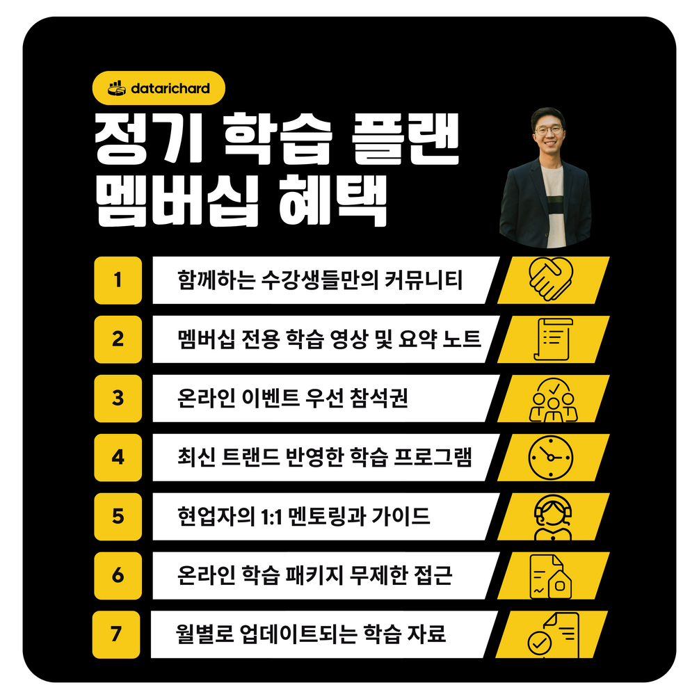 월 2회 구독자 전용 DATA/AI 학습 영상과 요약 노트를 받아볼 수 있는 학습 컨텐츠를 지속적으로 업데이트합니다. -